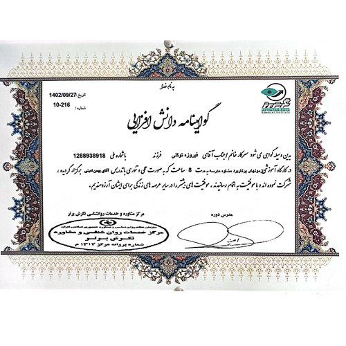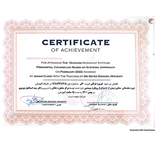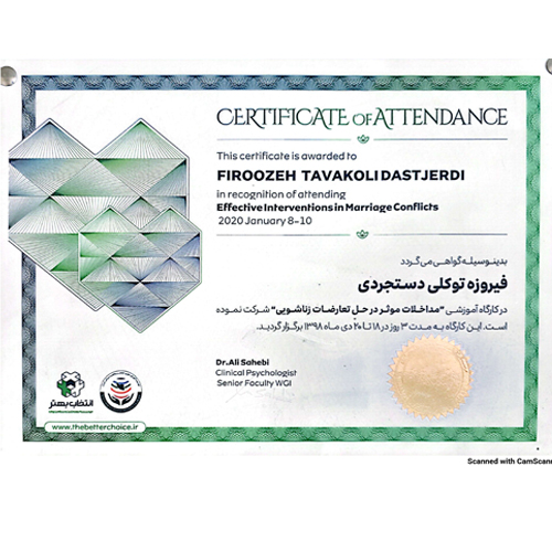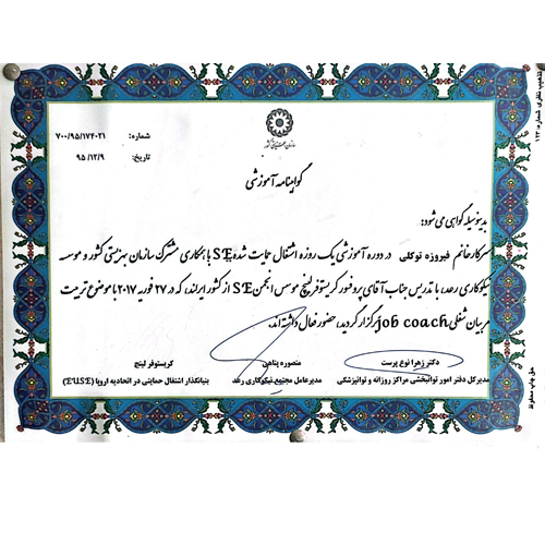 فروزه توکلی کارشناس ارشد مشاوره توان بخشی با (24 سال سابقه و 12 سال مشاوره) و فعالیت در زمینه مشاوره خانواده و زوج درمانی و کوچنگ فردی و سازمانی کار آفرینی و برگزار کننده کارگاه های اموزشی و مشاوره و.. .